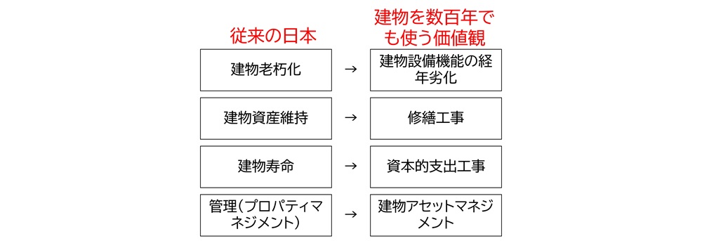 日本では、建物の事は建築業界が考えるものと、誰もが思っているが、実際には既に建てられ引き渡された建物とその土地は、建物所有者の資産となる。だから、建物延命ではなく、建物資産所有者が、建物を資産として使用続けるための、建物資産延命の考え方が必用なのだ。これを私達日本人は知らなかった。そこでここで建物資産延命の考え方と、更に実践に必要な準備として、30年分散修繕計画/30年安定ビル資産経営計画の概要をご紹介する。