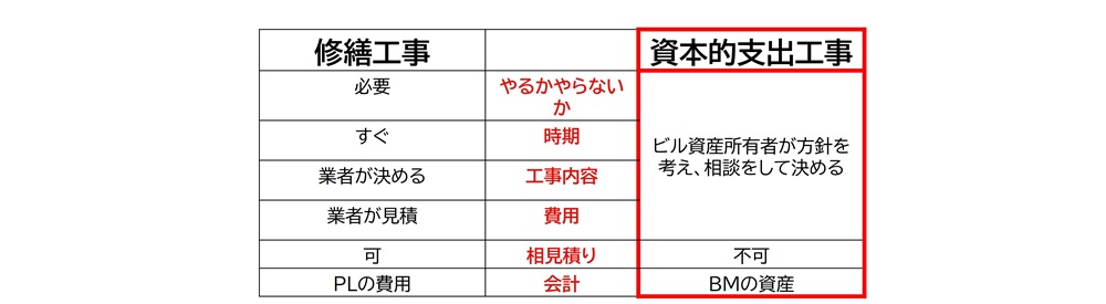 1.38 PLの修繕工事とBSの資本的支出工事は工事の取り組み方が違う