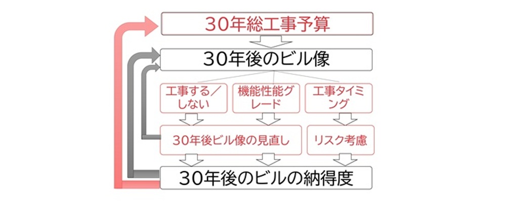 | ①何の工事をする/しない の「しない」を増やす | 将来ビル像がシンプルになる |